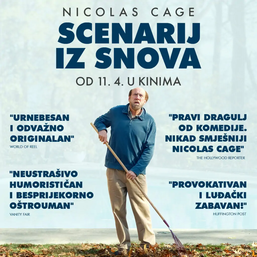 Poznat uglavnom po režiji kratkih filmova, najveći uspjeh norveškog scenarista i redatelja Kristoffera Borglija do sada je bio dugometražni horor “Sick of Myself” premijerno prikazan u sekciji Un Certain Regard na festivalu u Cannesu prije dvije godine. Film je pokupio nekoliko nagrada na raznim festivalima diljem svijeta, a kritika i publika podjednako su ga pozitivno prihvatile kao jednu vrlo kvalitetnu satiru o taštini. Ove godine Borgli je odlučio otići korak dalje i gledateljima priuštiti jednu potpuno novu razinu noćne more. Riječ je o horor komediji SCENARIJ IZ SNOVA u kojoj se Borgli koristi zvjezdanim statusom nikoga drugoga do Nicolasa Cagea kako bi ispričao briljantnu priču o svim možebitnim opasnostima koje donosi svjetska slava. Premisa crnohumornog horora SCENARIJ IZ SNOVA na prvi pogled zvuči potpuno uvrnuto i, zapravo, neizvedivo, ali Borgli uspijeva kroz vrlo inteligentan scenarij i postavljanje likova u kreativne situacije izvući poantu o istini te pravom stanju u kakvom se nalazi velika većina današnjeg modernog društva. U tome mu je svakako pomogao i Nicolas Cage, dobitnik prestižne nagrade Oscar za remek-djelo “Napuštajući Las Vegas” koji nakon dugo vremena mami pozornost svojom glumačkom performansom u SCENARIJU IZ SNOVA za koju je zasluženo nominiran i za nagradu Zlatni globus u kategoriji najboljeg glumca u komediji. Pored toga, Udruženja kritičara Las Vegasa, San Diega, Portlanda te države Georgije također su ga nominirala za svoje godišnje nagrade u kategoriji najboljeg glumca, a sam film kao i Cage dobili su nominacije za nagradu Satellite u kategorijama najbolje komedije te najboljeg glumca u komediji. Ništa od toga nije slučajno, jer upravo je Nicolas Cage – osim što je glavna zvijezda u radnji samog filma – ujedno i najjača karika zabavne, ali i zastrašujuće horor komedije SCENARIJ IZ SNOVA koja nam od četvrtka, 11. travnja stiže u domaća kina.