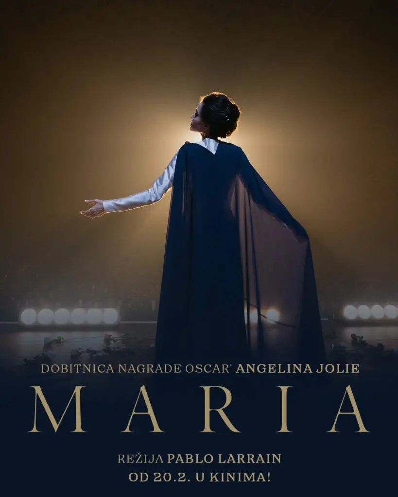 Čileanski redatelj Pablo Larraín kao da se specijalizirao za snimanje biografskih filmova o bogatim, utjecajnim, ali melankolijom duboko ispunjenim ženama. Nakon sjajnih uspjeha njegovih ranijih filmova „Jackie“ i „Spencer“ čije su obje glavne glumice – Natalie Portman i Kristen Stewart – ostvarile možda i ponajbolje uloge svojih karijera te dobile nominacije za prestižnu nagradu Oscar u kategoriji najbolje ženske uloge, Larraín se odlučio pozabaviti svijetom opere, točnije snimiti biografsku priču o najvećoj opernoj divi 20. stoljeća – Mariji Callas. Za glavnu ulogu odabrao je ni više ni manje nego holivudsku superzvijezdu Angelinu Jolie za koju je kritika složna da je, baš poput Portman i Stewart, odradila jednu od najvećih uloga vlastite karijere, magično portretiravši Mariju Callas, istančano do najsitnijeg detalja te se potpuno unijevši u ulogu i to na onakav način kako mogu samo najveći glumci. Njezin je portret operne dive toliko dojmljiv da se potpuno gubi granica između glumice i lika pa će gledatelji na ekranu zbilja imati osjećaj kao da gledaju Mariju Callas, a ne Angelinu Jolie. Riječ je o filmu MARIA, biografskoj drami koja je svoju svjetsku premijeru imala u službenoj konkurenciji festivala u Veneciji u rujnu prošle godine gdje je izazvala nezapamćeno zanimanje javnosti. Velika većina svjetskih medija, i to ne samo onih koji prate filmsku odnosno zabavljačku industriju, popratila je premijeru MARIJE, filma kojeg se odmah proglasilo kao jednim od onih koji će voditi glavnu riječ u predstojećoj sezoni filmskih nagrada. Angelina Jolie pobrala je, očekivano, najviše hvalospjeva za svoj portret pa je tako nominirana i za nagradu Zlatni globus u kategoriji najbolje glumice, a razna su je Udruženja američkih kritičara također redovno nominirala u istoj kategoriji uključujući i one iz Chicaga, Dallasa, Las Vegasa, St. Louisa, New Yorka, Houstona i San Francisca. Biografska drama MARIA od četvrtka, 20. veljače stiže u domaća kina!