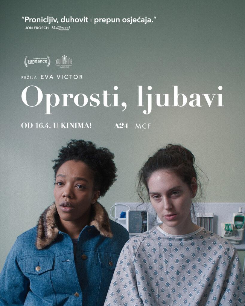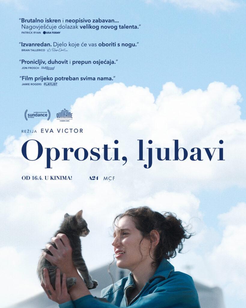 Od četvrtka, 16. travnja u kina stiže crnohumorna dramedija OPROSTI, LJUBAVI koju je napisala i režirala glumica Eva Victor. Riječ je o njezinom redateljskom prvijencu koji je svjetsku premijeru doživio na prošlogodišnjem festivalu u Sundanceu gdje je pobrao hvalospjeve filmske struke te osvojio nagradu u kategoriji najboljeg scenarija. Ova intimna i topla priča o djevojci koja je proživjela seksualnu traumu prikazana je i na festivalu u Cannesu i to u sekciji „Director’s Fortnight“ gdje je postala završnim filmom kompletnog programa. Nakon vrlo uspješnih premijera u Sundanceu i Cannesu, OPROSTI, LJUBAVI nastavio je s festivalskim prikazivanjem pa je tako film prikazan i na festivalima u Valladolidu, Stockholmu, Sydneyju i Edinburghu, a hrvatsku je premijeru ova humoristična drama imala na prošlogodišnjem izdanju Zagreb film festivala gdje je prikazana u službenoj konkurenciji. U konačnici, redateljski prvijenac Eve Victor može se pohvaliti s desecima osvojenih priznanja na raznim međunarodnim festivalima diljem svijeta od kojih se posebno ističu dvije nagrade Nacionalnog udruženja američkih kritičara – za najbolje redateljsko debitantsko ostvarenje te za najbolji film godine snimljen u nezavisnoj produkciji. Pored toga, Eva Victor je za svoj glumački nastup u filmu ove godine dobila nominaciju za nagradu Zlatni globus u kategoriji najbolje glumice u dramskom filmu. Produkcijski budžet filma iznosio je 1,5 milijuna dolara, a do danas je u svijetu zaradio gotovo 3,5 milijuna dolara što se smatra izuzetnim uspjehom s obzirom na tematiku i žanr samog djela. Pored Eve Victor u filmu OPROSTI, LJUBAVI glavne su uloge ostvarili Naomi Ackie koja je upravo za ovu rolu osvojila nagradu Spirit, te Lucas Hedges, široj publici vjerojatno najpoznatiji po ulozi u filmu „Manchester by the Sea“ za koju je nominiran za prestižnu nagradu Oscar. Film je, između ostalih, producirao i Barry Jenkins, redatelj remek-djela „Moonlight“ za kojeg je osvojio Oscara, a on i Eva Victor prvi put su se upoznali nakon što ju je on zapratio na Instagramu. Poslao joj je poruku da u njegovu produkcijsku kompaniju Pastel slobodno pošalje scenarij ako ikada išta napiše, a u jednom je intervjuu Victor izjavila da ju je Jenkins vidio kao redateljicu puno prije nego je ona vidjela samu sebe u toj ulozi. Jenkins je to potvrdio izjavivši da je njezin komičarski rad na društvenim mrežama više odisao režijom nego bilo čim drugim te da je upravo zbog toga pomislio da bi Victor mogla postati kvalitetnom redateljicom. Dramedija OPROSTI, LJUBAVI u domaća kina stiže u četvrtak, 16. travnja.