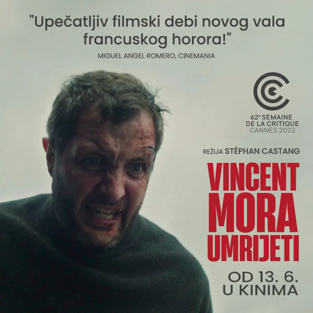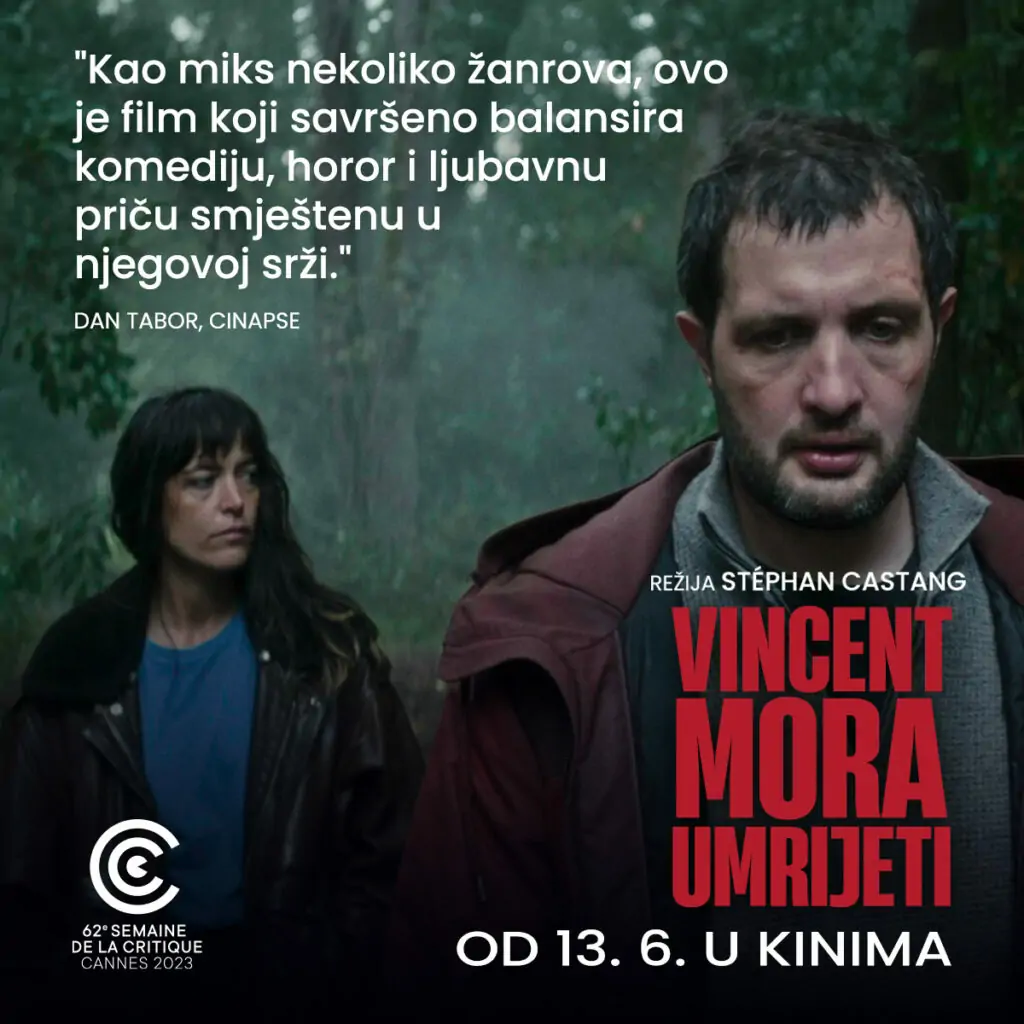 Jedna loša šala okrenut će cijeli svijet protiv jadnog Vincenta. Ljudi će ga pokušati ubiti naoko bez ikakvog razloga. U kaosu koji slijedi, Vincent upoznaje Margot s kojom je primoran pobjeći. Ovako započinje radnja akcijske horor komedije VINCENT MORA UMRIJETI redatelja Stéphana Castanga koji je kao svoj dugometražni prvijenac izabrao vrlo zanimljivu mješavinu različitih žanrova u djelu koje pripada novom valu francuskog horora. Jedna od najočitijih referenci filma VINCENT MORA UMRIJETI svakako je remek-djelo Alfreda Hitchcocka “Ptice”, ali gledatelj će tijekom Castangovog filma prepoznati i druga vrhunska kultna ostvarenja poznatih redatelja iz prošlosti. Redatelj Castang izabrao je ispričati Vincentovu priču kao pretapokaliptičnu noćnu moru kako bi prikazao iskrivljenu prirodu naše povezanosti s drugim ljudima te naš strah od onoga što je drugačije. No osim potpunog kaosa ispunjenog hrpom akcijskih sekvenci, VINCENT MORA UMRIJETI u svojoj je srži zapravo intimna ljubavna priča. Akcijska horor komedija VINCENT MORA UMRIJETI svoju je premijeru imala na filmskom festivalu u Cannesu gdje se natjecala u kategoriji Caméra d’Or, a također je dobila nominacije za prestižnu francusku nagradu César u kategoriji najboljeg redateljskog debija te za nagradu Europske filmske Akademije u kategoriji europskog otkrića godine. Film VINCENT MORA UMRIJETI u domaća kina stiže nam u četvrtak, 13. lipnja.